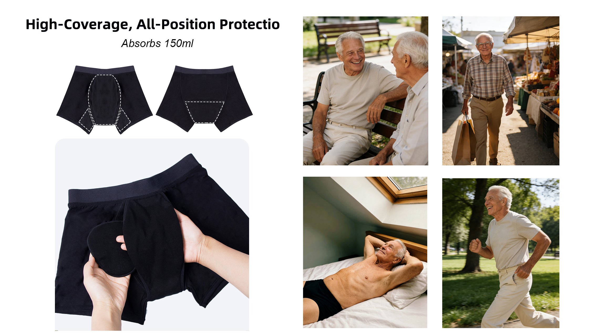 Mivorae washable men’s leakproof underwear — looks regular, supports you at work, the gym, and everywhere.